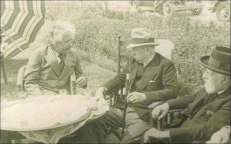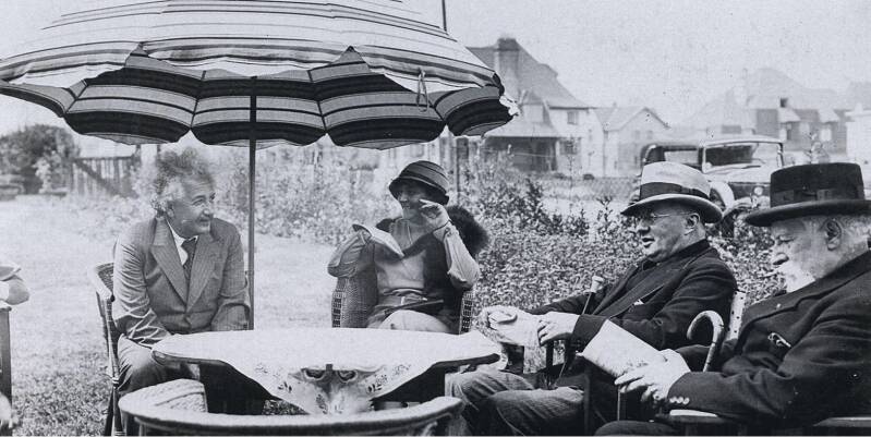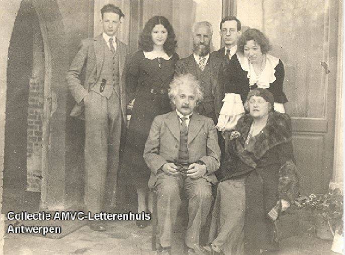 Ontvangst van Albert Einstein en zijn echtgenote Elza (zittend vooraan) op kasteel Cantecroy in Mortsel.