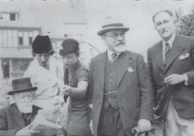 Einstein, Marcel Abraham (secretaris van de Monzie), Anatole de Monzie (Franse minister onderwijs en pacifist) en James Ensor